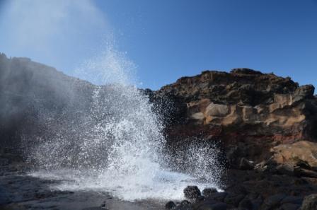 Unser erstes Ziel entlang der Ostküste war Lahaina. Vor 1846 war Lahaina die Haupstadt von Hawaii (jetzt ist es Honululu). Damals galt Lahaina als ein „Höllenloch im Pazifik“ (es gibt 2, das 2. war Russel in Neuseeland), weil die Stadt als Walfängerstadt galt und die Walfänger und Seemänner quasi „Sodom und Gomorra“ in die Stadt brachten. Heute ist Lahaina ein netter Touristenmagnet, allerdings auch mit allerlei Touristennapp. Was Lahaina aber hat, ist ein Bubba Gump Restaurant. Wie schon in Hongkong und Fort Lauderdale kamen wir oder besser ich nicht umhin, ein paar Shrimps zu essen. Gestärkt ging es weiter zum „Nakalele Blowhole“. Es sieht aus wie ein Geysir, ist aber Meerwasser, dass mit der Brandung durch ein Loch in den Klippen nach oben geschleudert wird. Spektakulär!