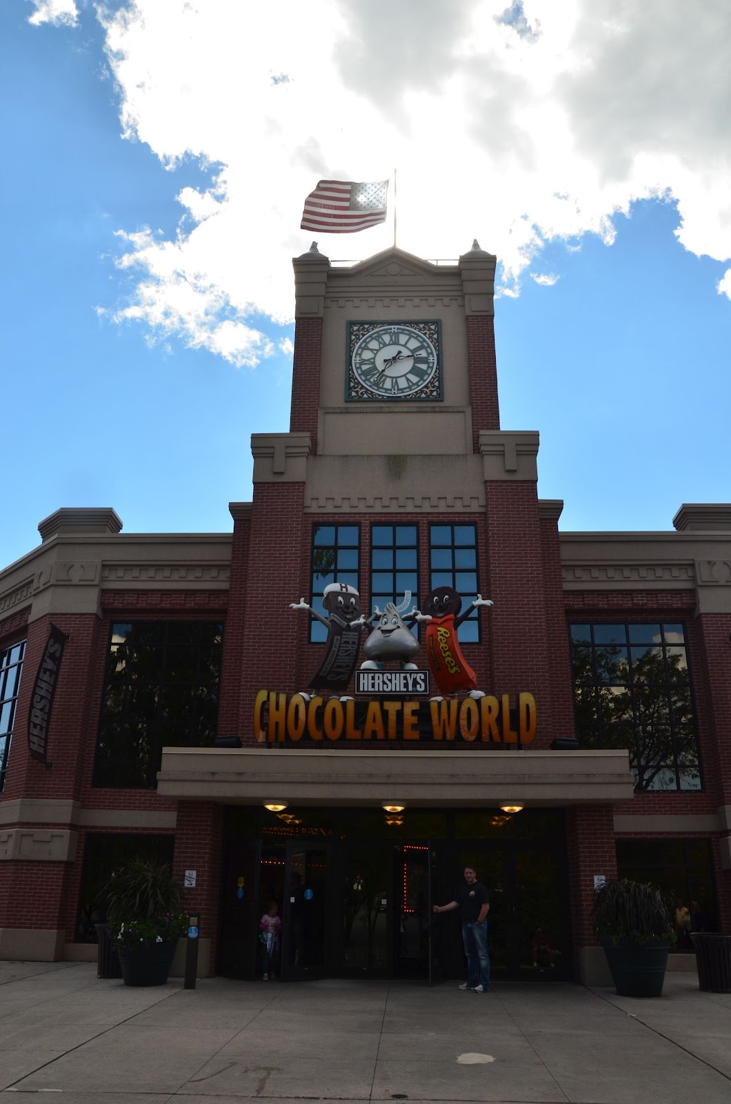 Nachdem wir diesen ehrwürdigen Ort hinter uns gelassen haben ging unsere Reise weiter nach StroudsburgAuf den Weg dahin kamen wir an der Stadt Hersheys vorbei und hier mussten wir einfach anhalten. Diese Stadt ist quasi Schokolade, die Straßen haben Namen wie Chocolate Avenue und die Straßen-Laternen haben die Formen von Schokoküssen – die Stadt Hersheys „steht und fällt“ mit der Hersheys Schokoladenfabrik. Das Imperium Hersheys ist mittlerweile so groß geworden, dass es zu der Fabrik einen eigenen riesigen Freizeitpark und ein Hersheys-Museum gibt.